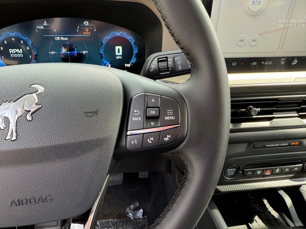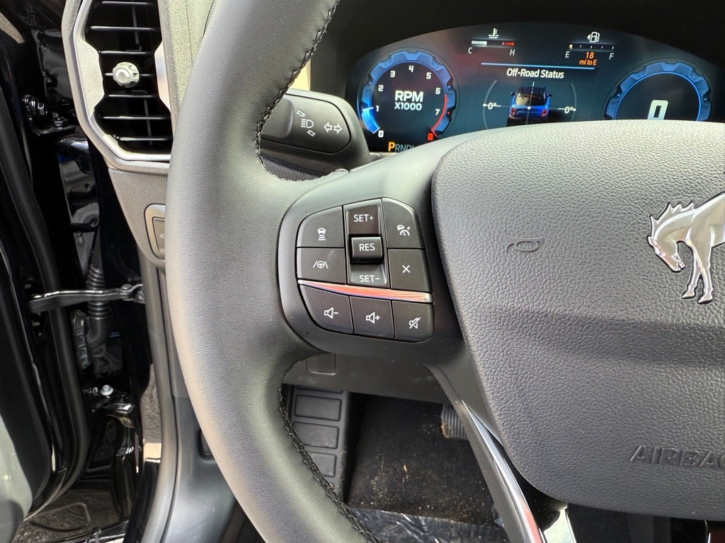 Black Diamond Off-Road Package (110V/400W AC Power Outlet, 2nd Row Carpeted Seatback, Auxiliary Switches & Wiring, Brush Guard, Cargo Management System (Shelf/Divider/Table), Cargo Mat, Class II Trailer Tow Pack w/Trailer Sway Control, Fender Tie Downs, Front & Rear Black Bumpers, Interior Grab Handle, Recovery Hooks, and Wheels: 17 Carbonized Gray Painted Aluminum), Convenience Package (Front Driver/Passenger Seat Back Map Pockets, Heated 8-Way Power Driver's Seat, LED Fog Lamps, Premium Wrapped Steering Wheel, and Universal Garage Door Opener (UGDO)), Equipment Group 200A, 4-Wheel Disc Brakes, 6 Speakers, ABS brakes, Air Conditioning, Alloy wheels, AM/FM radio: SiriusXM, AM/FM Stereo, Auto High-beam Headlights, Automatic temperature control, Brake assist, Cloth w/Easy-to-Clean Front Bucket Seats, Compass, Delay-off headlights, Driver door bin, Driver vanity mirror, Dual front impact airbags, Dual front side impact airbags, Electronic Stability Control, Emergency communication system: SYNC 4 911 Assist, Four wheel independent suspension, Front anti-roll bar, Front Bucket Seats, Front Center Armrest, Front reading lights, Fully automatic headlights, Heated door mirrors, Illuminated entry, Knee airbag, Low tire pressure warning, Occupant sensing airbag, Outside temperature display, Overhead airbag, Overhead console, Panic alarm, Passenger door bin, Passenger vanity mirror, Power door mirrors, Power Moonroof, Power steering, Power windows, Radio data system, Rear anti-roll bar, Rear Parking Sensors, Rear reading lights, Rear seat center armrest, Rear window defroster, Rear window wiper, Remote keyless entry, Security system, SiriusXM, Speed control, Speed-sensing steering, Speed-Sensitive Wipers, Split folding rear seat, Steering wheel mounted audio controls, SYNC 4 w/Enhanced Voice Recognition, Tachometer, Telescoping steering wheel, Tilt steering wheel, Traction control, Trip computer, Variably intermittent wipers, and Wheels: 17 Carbonized Gray-Painted Aluminum. 25/30 City/Highway MPG