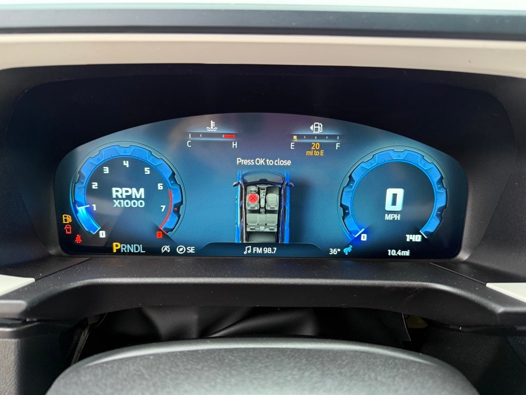 Convenience Package (Front Driver/Passenger Seat Back Map Pockets, Heated 8-Way Power Driver's Seat, LED Fog Lamps, Premium Wrapped Steering Wheel, and Universal Garage Door Opener (UGDO)), 2nd Row Carpeted Seatback, 4-Wheel Disc Brakes, 6 Speakers, ABS brakes, Air Conditioning, Alloy wheels, AM/FM radio: SiriusXM, AM/FM Stereo, Auto High-beam Headlights, Automatic temperature control, Brake assist, Compass, Delay-off headlights, Driver door bin, Driver vanity mirror, Dual front impact airbags, Dual front side impact airbags, Electronic Stability Control, Emergency communication system: SYNC 4 911 Assist, Four wheel independent suspension, Front & Rear Floor Liners w/o Carpet Mats, Front anti-roll bar, Front Bucket Seats, Front Center Armrest, Front reading lights, Fully automatic headlights, Heated door mirrors, Illuminated entry, Knee airbag, Low tire pressure warning, Occupant sensing airbag, Outside temperature display, Overhead airbag, Overhead console, Panic alarm, Passenger door bin, Passenger vanity mirror, Plaid Cloth Front Bucket Seats, Power door mirrors, Power Moonroof, Power steering, Power windows, Radio data system, Rear anti-roll bar, Rear Parking Sensors, Rear reading lights, Rear seat center armrest, Rear window defroster, Rear window wiper, Remote keyless entry, Security system, SiriusXM, Speed control, Speed-sensing steering, Speed-Sensitive Wipers, Split folding rear seat, Steering wheel mounted audio controls, SYNC 4 w/Enhanced Voice Recognition, Tachometer, Telescoping steering wheel, Tilt steering wheel, Traction control, Trip computer, Variably intermittent wipers, and Wheels: 17 Oxford White-Painted Aluminum. 25/30 City/Highway MPG