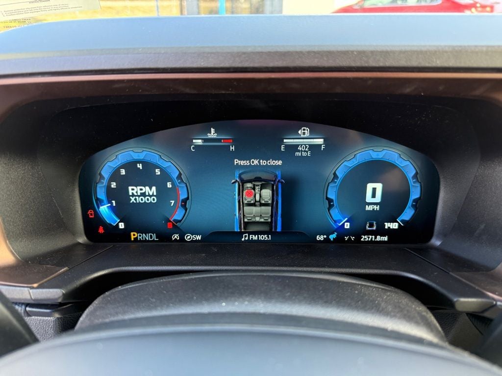 2nd Row Carpeted Seatback, 4-Wheel Disc Brakes, 6 Speakers, ABS brakes, Air Conditioning, Alloy wheels, AM/FM radio: SiriusXM, AM/FM Stereo, Auto High-beam Headlights, Auto-dimming Rear-View mirror, Automatic temperature control, Brake assist, Compass, Delay-off headlights, Driver door bin, Driver vanity mirror, Dual front impact airbags, Dual front side impact airbags, Electronic Stability Control, Emergency communication system: SYNC 4 911 Assist, Four wheel independent suspension, Front anti-roll bar, Front Bucket Seats, Front Center Armrest, Front Driver/Passenger Seat Back Map Pockets, Front dual zone A/C, Front fog lights, Front reading lights, Fully automatic headlights, Garage door transmitter, Heated door mirrors, Heated front seats, Heated steering wheel, Illuminated entry, Knee airbag, Low tire pressure warning, Memory seat, Occupant sensing airbag, Outside temperature display, Overhead airbag, Overhead console, Panic alarm, Passenger door bin, Passenger vanity mirror, Power door mirrors, Power driver seat, Power passenger seat, Power steering, Power windows, Premium Trimmed Front Bucket Seats w/Ebony/Roast, Radio data system, Rain sensing wipers, Rear anti-roll bar, Rear Parking Sensors, Rear reading lights, Rear seat center armrest, Rear window defroster, Rear window wiper, Remote keyless entry, Security system, SiriusXM, Speed control, Speed-sensing steering, Speed-Sensitive Wipers, Split folding rear seat, Steering wheel mounted audio controls, SYNC 4 w/Enhanced Voice Recognition, Tachometer, Telescoping steering wheel, Tilt steering wheel, Traction control, Trip computer, Variably intermittent wipers, and Wheels: 18 Ebony Black-Painted Aluminum. 25/30 City/Highway MPG