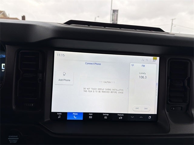 Equipment Group 331A Standard Package, 4-Wheel Disc Brakes, 4.7 Axle Ratio, 7 Speakers, ABS brakes, Air Conditioning, Alloy wheels, AM/FM radio: SiriusXM with 360L, AM/FM Stereo, Auto High-beam Headlights, Auto-dimming Rear-View mirror, Backup Camera, Brake assist, Compass, Delay-off headlights, Door Storage Bags, Driver door bin, Driver vanity mirror, Dual front impact airbags, Dual front side impact airbags, Electronic Stability Control, Emergency communication system: 911 Assist, Front anti-roll bar, Front Bucket Seats, Front Center Armrest, Front fog lights, Front reading lights, Front wheel independent suspension, Fully automatic headlights, Hard Top Sound Deadening Headliner, Heated door mirrors, Heated front seats, Heated steering wheel, Illuminated entry, Integrated roll-over protection, Internet access capable: FordPass Connect, Keyless Entry, Leather Shift Knob, Low tire pressure warning, Marine Grade Vinyl Heated Bucket Seats, Occupant sensing airbag, Outside temperature display, Overhead airbag, Overhead console, Panic alarm, Passenger door bin, Passenger vanity mirror, Power door mirrors, Power steering, Power windows, Radio data system, Rear-Window Defroster & Washer, Security system, Shadow Black Painted Hard Top, SiriusXM w/360L, Speed control, Split folding rear seat, Steering wheel mounted audio controls, SYNC 4, Tachometer, Telescoping steering wheel, Tilt steering wheel, Traction control, Trip computer, Variably intermittent wipers, Voltmeter, and Wheels: 17 Carbonized Gray-Painted Aluminum. Price includes: $2500 - Retail Customer Cash. Exp. 03/31/2026