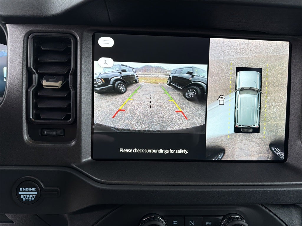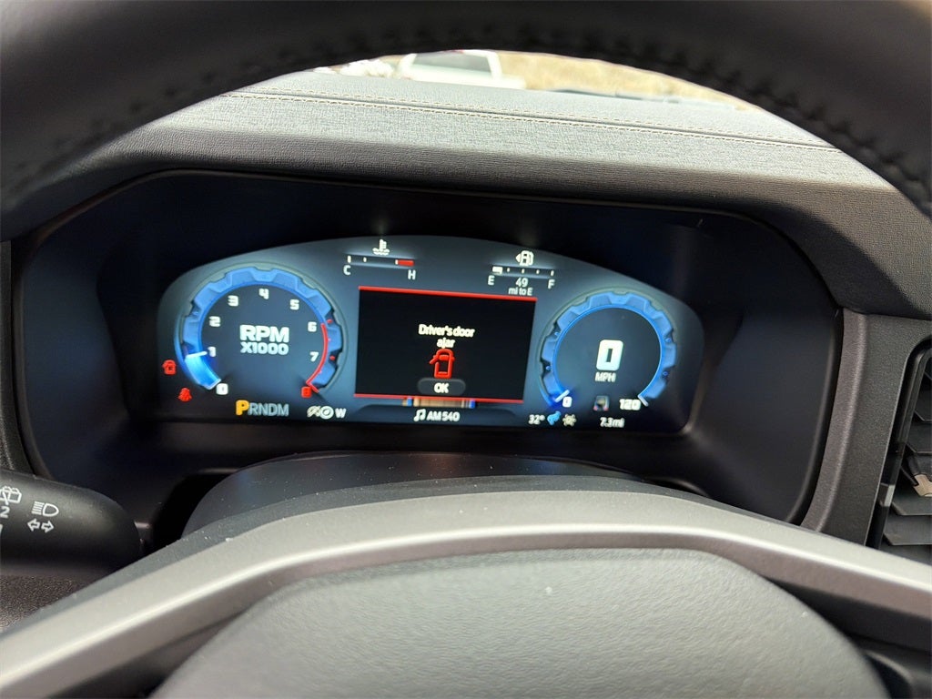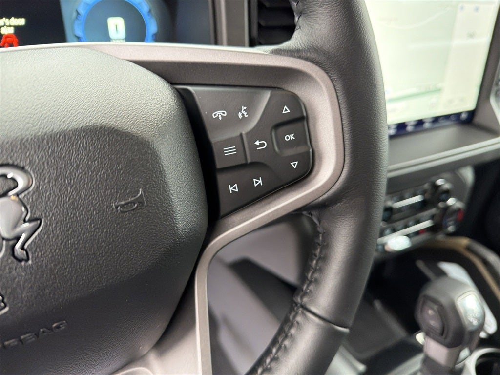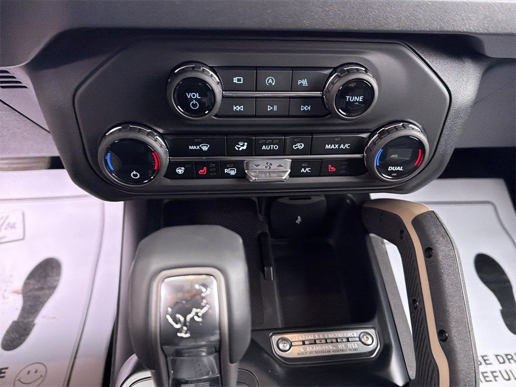 Equipment Group 334A Lux Package (2-Door Intelligent Access w/Lock/Unlock, 360-Degree Camera, Adaptive Cruise Control, Ambient Footwell Lighting, Connected Navigation, Dr & Pass Illuminated Sliding Visor Vanity Mirrors, Dual Smart Charging USB Ports, Dual-Zone Electronic Automatic Temperature Control, Evasive Steering Assist, Front Parking Sensors, Front Row Heated Seats, Information on Demand Panel, Power Outlet - Back Side of Center Floor Console, Radio: B&O Sound System by Bang & Olufsen, Rear Parking Sensors, Sideview Mirrors, and Universal Garage Door Opener), Sasquatch Graphics Package, Sasquatch Package (High Clearance Fender Flares, High Clearance Suspension, Position-Sensitive Bilstein Shock Absorbers, and Wheels: 17 Carbonized Gray Painted Aluminum), 4-Wheel Disc Brakes, 7 Speakers, ABS brakes, Air Conditioning, Alloy wheels, AM/FM radio: SiriusXM with 360L, AM/FM Stereo, Auto High-Beam Headlamps, Auto High-beam Headlights, Auto-dimming Rear-View mirror, BLIS Blind Spot Information System, Brake assist, Compass, Delay-off headlights, Door Storage Bags, Driver door bin, Driver vanity mirror, Dual front impact airbags, Dual front side impact airbags, Electronic Stability Control, Emergency communication system: 911 Assist, Exterior Parking Camera Rear, Ford Performance Heavy-Duty Modular Front Bumper, Front anti-roll bar, Front Bucket Seats, Front Center Armrest, Front fog lights, Front reading lights, Front wheel independent suspension, Fully automatic headlights, Hard Top Sound Deadening Headliner, Heated door mirrors, Heated front seats, Heated steering wheel, Illuminated entry, Integrated roll-over protection, Internet access capable: FordPass Connect, Lane-Keeping System, Leather Shift Knob, Low tire pressure warning, Marine Grade Vinyl Heated Bucket Seats, Occupant sensing airbag, Outside temperature display, Overhead airbag, Overhead console, Panic alarm, Passenger door bin, Passenger vanity mirror, Power door mirrors, Power steering, Power windows, Pre-Collision Assist w/Automatic Emergency Braking, Radio data system, Rear-View Camera, Rear-Window Defroster & Washer, Remote keyless entry, Security system, Shadow Black Painted Hard Top, SiriusXM w/360L, Speed control, Split folding rear seat, Steering wheel mounted audio controls, SYNC 4, Tachometer, Telescoping steering wheel, Tilt steering wheel, Traction control, Trip computer, Upgraded Carpet Floor Mats, Variably intermittent wipers, Voltmeter, and Wheels: 17 Carbonized Gray-Painted Aluminum.