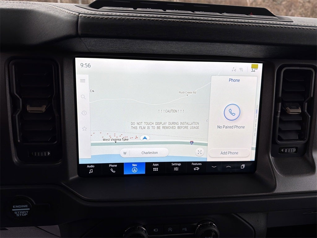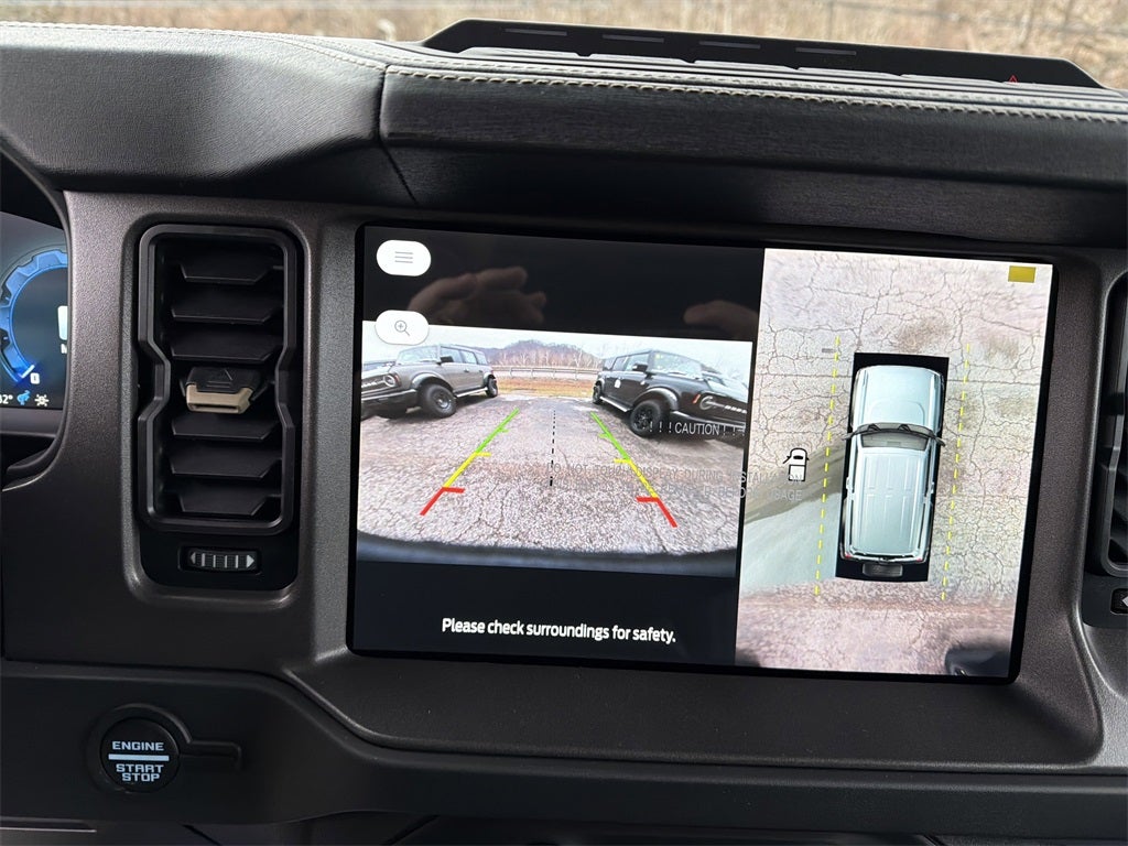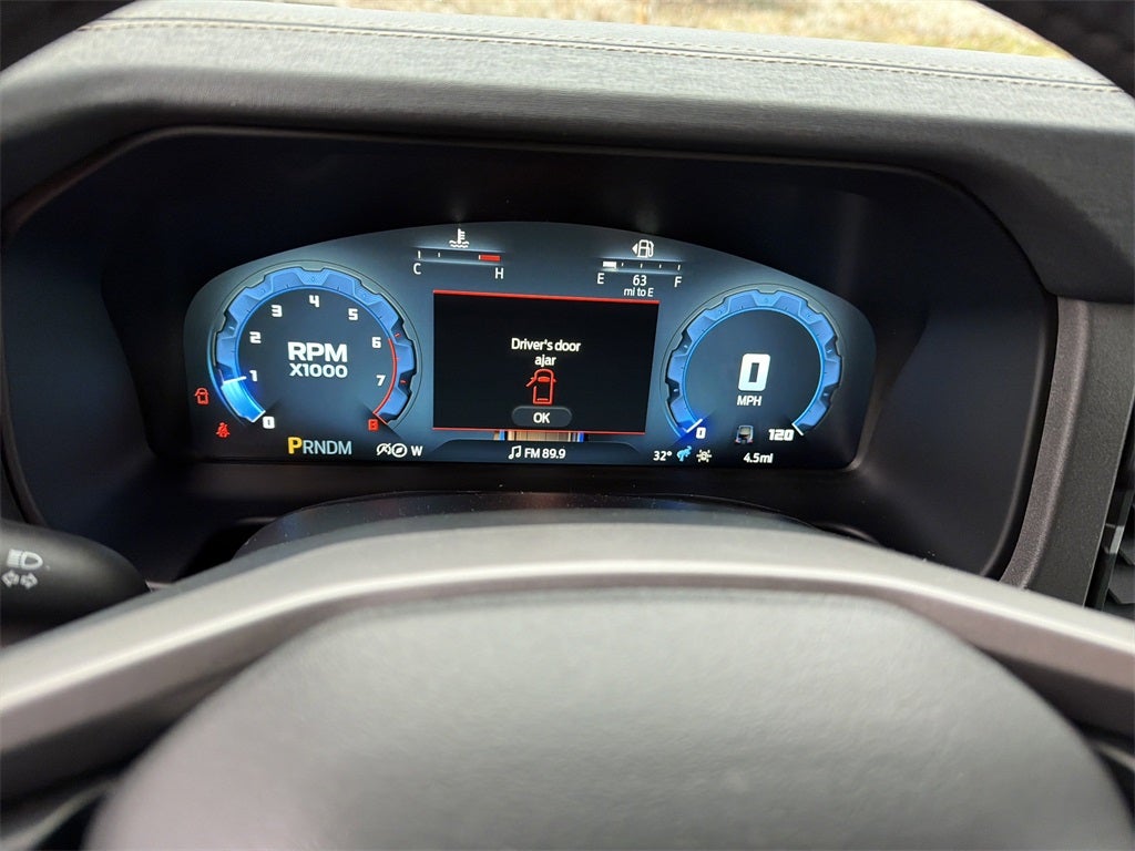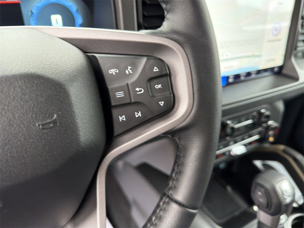 Equipment Group 334A Lux Package (2-Door Intelligent Access w/Lock/Unlock, 360-Degree Camera, Adaptive Cruise Control, Ambient Footwell Lighting, Connected Navigation, Dr & Pass Illuminated Sliding Visor Vanity Mirrors, Dual Smart Charging USB Ports, Dual-Zone Electronic Automatic Temperature Control, Evasive Steering Assist, Front Parking Sensors, Front Row Heated Seats, Information on Demand Panel, Power Outlet - Back Side of Center Floor Console, Radio: B&O Sound System by Bang & Olufsen, Rear Parking Sensors, Sideview Mirrors, and Universal Garage Door Opener), 4-Wheel Disc Brakes, 4.7 Axle Ratio, 7 Speakers, ABS brakes, Air Conditioning, Alloy wheels, AM/FM radio: SiriusXM with 360L, AM/FM Stereo, Auto High-Beam Headlamps, Auto High-beam Headlights, Auto-dimming Rear-View mirror, BLIS Blind Spot Information System, Brake assist, Compass, Delay-off headlights, Door Storage Bags, Driver door bin, Driver vanity mirror, Dual front impact airbags, Dual front side impact airbags, Electronic Stability Control, Emergency communication system: 911 Assist, Exterior Parking Camera Rear, Front anti-roll bar, Front Bucket Seats, Front Center Armrest, Front fog lights, Front reading lights, Front wheel independent suspension, Fully automatic headlights, Hard Top Sound Deadening Headliner, Heated door mirrors, Heated front seats, Heated steering wheel, Illuminated entry, Integrated roll-over protection, Internet access capable: FordPass Connect, Lane-Keeping System, Leather Shift Knob, Low tire pressure warning, Marine Grade Vinyl Heated Bucket Seats, Occupant sensing airbag, Outside temperature display, Overhead airbag, Overhead console, Panic alarm, Passenger door bin, Passenger vanity mirror, Power door mirrors, Power steering, Power windows, Pre-Collision Assist w/Automatic Emergency Braking, Radio data system, Raptor-Style Running Board, Rear-View Camera, Rear-Window Defroster & Washer, Remote keyless entry, Security system, Shadow Black Painted Hard Top, SiriusXM w/360L, Speed control, Split folding rear seat, Steering wheel mounted audio controls, SYNC 4, Tachometer, Telescoping steering wheel, Tilt steering wheel, Traction control, Trip computer, Upgraded Carpet Floor Mats, Variably intermittent wipers, Voltmeter, and Wheels: 17 Carbonized Gray-Painted Aluminum.