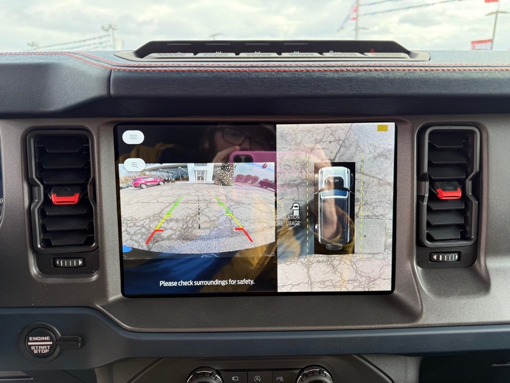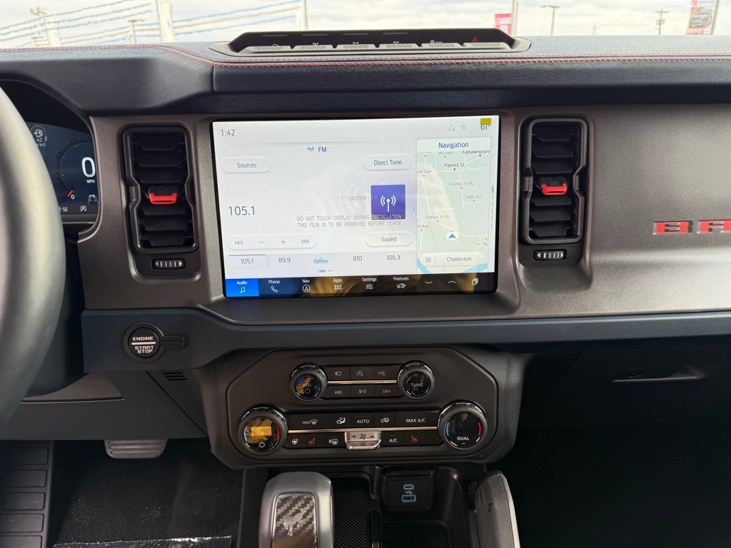 Equipment Group 374A Lux Package, Raptor Code Orange Appearance Package (Body-Color Painted Sideview Mirror Caps, Code Orange Accent Seat Belts, Interior Carbon Fiber Pack, and Wheels: 17 Dark Carbonized Gray Alloy Painted), 12 Speakers, 4-Wheel Disc Brakes, ABS brakes, Air Conditioning, Alloy wheels, AM/FM radio: SiriusXM with 360L, Auto High-beam Headlights, Auto-dimming Rear-View mirror, Automatic temperature control, Body Color-Painted Hard Top, Brake assist, Compass, Connected Navigation, Convertible HardTop, Convertible roof lining, Delay-off headlights, Driver door bin, Driver vanity mirror, Dual front impact airbags, Dual front side impact airbags, Electronic Stability Control, Emergency communication system: 911 Assist, Exterior Parking Camera Rear, Front anti-roll bar, Front Bucket Seats, Front Center Armrest, Front dual zone A/C, Front fog lights, Front reading lights, Front wheel independent suspension, Full Display Rearview Mirror, Fully automatic headlights, Garage door transmitter, Glass rear window, Hard Top Sound Deadening Headliner, Heated door mirrors, Heated front seats, Heated steering wheel, Illuminated entry, Integrated roll-over protection, Internet access capable: FordPass Connect, Leather Shift Knob, Low tire pressure warning, Marine Grade Vinyl Bucket Seats, Navigation system: Connected Navigation, Occupant sensing airbag, Outside temperature display, Overhead airbag, Overhead console, Panic alarm, Passenger door bin, Passenger vanity mirror, Power door mirrors, Power steering, Power windows, Radio data system, Radio: B&O Sound System by Bang & Olufsen, Rear anti-roll bar, Rear seat center armrest, Rear window defroster, Rear window wiper, Rear-Window Defroster & Washer, Remote keyless entry, Security system, SiriusXM w/360L, Speed control, Split folding rear seat, Steering wheel mounted audio controls, SYNC 4, Tachometer, Telescoping steering wheel, Tilt steering wheel, Traction control, Trip computer, Turn signal indicator mirrors, Variably intermittent wipers, Voltmeter, and Wheels: 17 Black High Gloss-Painted Aluminum.