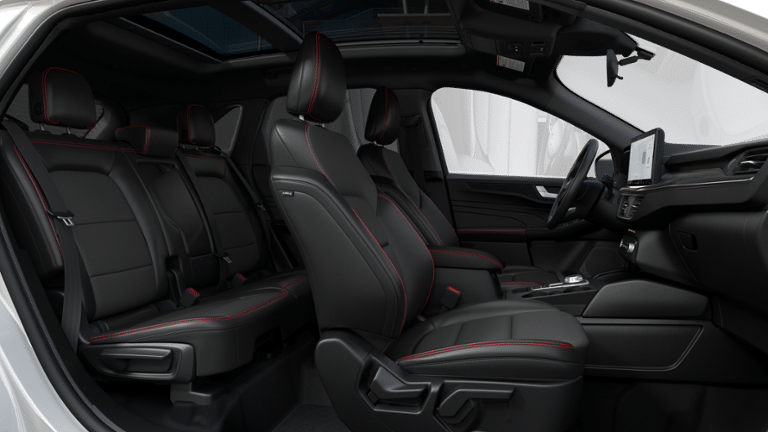 Cold Weather Package (Heated Front Row Seats, Heated Sideview Mirrors, Heated Steering Wheel, and Remote Starter System), Equipment Group 300A, Tech Pack #1 (Adaptive Cruise Control w/Stop-and-Go, Connected Navigation, Ford Co-Pilot360 Assist+, Intersection Assist, Predictive Speed Assist, Rear Parking Sensor, Rear-View Camera, and SYNC 4 w/Enhanced Voice Recognition), 3.81 Axle Ratio, 4-Wheel Disc Brakes, 6 Speakers, ABS brakes, Air Conditioning, Alloy wheels, AM/FM radio: SiriusXM, AM/FM Stereo, Auto High-beam Headlights, Automatic temperature control, Black Roof-Rack Side Rails, Brake assist, Bumpers: body-color, Compass, Delay-off headlights, Driver door bin, Driver vanity mirror, Dual front impact airbags, Dual front side impact airbags, Electronic Stability Control, Emergency communication system: SYNC 4 911 Assist, FordPass Connect, Four wheel independent suspension, Front anti-roll bar, Front Bucket Seats, Front Center Armrest, Front dual zone A/C, Front reading lights, Fully automatic headlights, Illuminated entry, Knee airbag, Low tire pressure warning, Occupant sensing airbag, Outside temperature display, Overhead airbag, Overhead console, Panic alarm, Panoramic Vista Roof, Passenger door bin, Passenger vanity mirror, Power door mirrors, Power driver seat, Power Liftgate, Power steering, Power windows, Radio data system, Rear anti-roll bar, Rear reading lights, Rear seat center armrest, Rear window defroster, Rear window wiper, Remote keyless entry, Speed control, Speed-sensing steering, Speed-Sensitive Wipers, Split folding rear seat, Spoiler, Sport steering wheel, Steering wheel mounted audio controls, SYNC 4, Tachometer, Telescoping steering wheel, Tilt steering wheel, Traction control, Trip computer, Variably intermittent wipers, Vinyl/Cloth Front Sport Contour Bucket Seats, and Wheels: 18 Rock Metallic Painted Aluminum. 27/34 City/Highway MPG