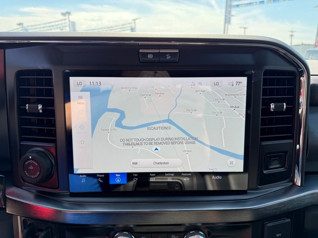 Black Appearance Package (6 Ebony Black Angular Running Boards, Black Painted Front Grille Surround, and Ebony Black Painted Mirror Caps), FX4 Off-Road Package (Hill Descent Control, Off-Road Specifically Tuned Shock Absorbers, and Unique FX4 Off-Road Box Decal), High Capacity 11.6 Axle Upgrade Package, Lariat Ultimate Package (4-Way Adjustable Headrests, Head-Up Display, Power-Deployable Running Boards, Privacy Glass, Pro Trailer Backup Assist, Pro Trailer Hitch Assist, and Radio: B&O Unleashed Sound System by Bang & Olufsen), Order Code 608A (Flow-Through Console and Front ActiveX Trimmed 40/Console/40 Seats), 4-Wheel Disc Brakes, 8 Speakers, ABS brakes, Adjustable pedals, Air Conditioning, Alloy wheels, AM/FM radio: SiriusXM with 360L, Auto High-beam Headlights, Auto-dimming Rear-View mirror, Automatic High Beam, Automatic temperature control, Brake assist, Bumpers: chrome, Compass, Delay-off headlights, Driver door bin, Driver vanity mirror, Dual AGM 68 AH Battery, Dual front impact airbags, Dual front side impact airbags, Electronic Stability Control, Emergency communication system: SYNC 4 911 Assist, Engine Block Heater, Front anti-roll bar, Front Bucket Seats, Front Center Armrest, Front dual zone A/C, Front fog lights, Front reading lights, Fully automatic headlights, Garage door transmitter, Heated door mirrors, Heated front seats, Heated rear seats, Heated steering wheel, Illuminated entry, Lane-Keeping System, LED Roof Clearance Lights, Low tire pressure warning, Memory seat, Navigation System, Outside temperature display, Overhead airbag, Overhead console, Panic alarm, Passenger door bin, Passenger vanity mirror, Pedal memory, Post-Collision Braking, Power door mirrors, Power driver seat, Power passenger seat, Power steering, Power windows, Pre-Collision Assist, Rain sensing wipers, Rear Parking Sensors, Rear reading lights, Rear seat center armrest, Rear step bumper, Rear window defroster, Remote keyless entry, Security system, Speed control, Split folding rear seat, Steering wheel mounted audio controls, Tachometer, Telescoping steering wheel, Tilt steering wheel, Traction control, Trip computer, Turn signal indicator mirrors, Twin Panel Power Moonroof, Upfitter Switches (6), Variably intermittent wipers, and Ventilated front seats.