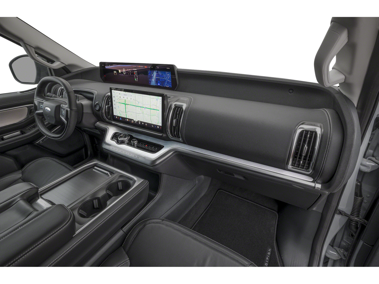 Driver's Package (Radio: B&O Play Unleashed and SiriusXM with 360L), Equipment Group 600A Standard Package (2nd Row Power-Folding Captain's Chairs, 3.73 Axle Ratio, BlueCruise Equipped (90-Day Trial), Ford Digital Experience, Heated and Ventilated Leather Front Captain's Chairs, Power Tilt/Telescopic Steering Wheel with Memory, Radio: B&O Sound System by Bang and Olufsen, and Wheels: 20 x 8.5 Ebony Bright Machined Aluminum), Ford Connectivity Package (1-Time Purchase), Ford Connectivity Package (1-Year Included), Stealth Appearance Package (Black Belt Molding, Black Expedition Lettering on Hood, Black Headlamp Bezel with Ebony Trim Applique, Black Platinum Badge on Tailgate, Black Roof Rails, Carbon Black Front Bumper/Fascia, Rear Side Windows Laminated Glass, and Signature Grille Lighting), Stealth Performance Package (Black Onyx Painted Power Deployable Running Boards, Engine Sound Enhancer, High Flow Exhaust System, and Wheels: 24 x 9.5 Ebony Painted Aluminum), 10 Speakers, 3rd row seats: split-bench, 4-Wheel Disc Brakes, ABS brakes, Air Conditioning, Alloy wheels, AM/FM radio: SiriusXM with 360L, Apple CarPlay/Android Auto, Auto High-beam Headlights, Auto-dimming door mirrors, Auto-dimming Rear-View mirror, Automatic temperature control, BlueCruise (equipment + 1-Time Purchase), Brake assist, Bumpers: body-color, Compass, Delay-off headlights, Driver door bin, Driver vanity mirror, Dual front impact airbags, Dual front side impact airbags, Electronic Stability Control, Emergency communication system: 911 Assist, Exterior Parking Camera Rear, Four wheel independent suspension, Front and 2nd Rows Floor Liners Without Carper Mats, Front anti-roll bar, Front Bucket Seats, Front Center Armrest, Front dual zone A/C, Front reading lights, Fully automatic headlights, Garage door transmitter, Genuine wood dashboard insert, Genuine wood door panel insert, Heated door mirrors, Heated front seats, Heated rear seats, Heated steering wheel, Illuminated entry, Intersection Assist, Leather steering wheel, Low tire pressure warning, Memory seat, Navigation System, Occupant sensing airbag, Outside temperature display, Overhead airbag, Overhead console, Panic alarm, Passenger door bin, Passenger vanity mirror, Power door mirrors, Power driver seat, Power moonroof: Vista Roof, Power passenger seat, Power steering, Power windows, Radio data system, Rain sensing wipers, Rear air conditioning, Rear anti-roll bar, Rear reading lights, Rear window defroster, Rear window wiper, Reclining 3rd row seat, Remote keyless entry, Security system, Speed control, Speed-sensing steering, Speed-Sensitive Wipers, Split folding rear seat, Spoiler, Steering wheel memory, Steering wheel mounted audio controls, Tachometer, Telescoping steering wheel, Tilt steering wheel, Traction control, Trip computer, Turn signal indicator mirrors, Variably intermittent wipers, Ventilated front seats, Voltmeter, and Wheels: 22 x 9.0 Ebony Bright Machined Face Aluminum. Recent Arrival!