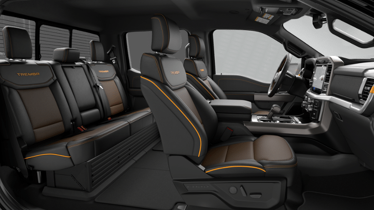 Bed Utility Package (4 Pickup Box Tie-Down Plates, LED Box Lighting, and Power Tailgate), Equipment Group 402A High (2nd Row Heated Seats, Auto-Dimming Rear-View Mirror, Electronic Locking with 3.73 Axle Ratio, Front Axle with Torsen Differential, Heated Steering Wheel, LED Taillamps, Media Bin Door, Modular Front Bumper and Carbon Black Rear Bumper, Power Glass Heated Sideview Mirrors, Power-Adjustable Pedals with Memory, Radio: B&O Unleashed Sound System by Bang & Olufsen, Rain-Sensing Wipers, Unique Tremor Leather-Trimmed Seats, Universal Garage Door Opener, and Wheels: 18 Alloy with Dark Matte Finish), Ford Connectivity Package (1-Year Included), GVWR: 7,050 lbs Payload Package, Internet access capable: 5G Modem - Ford Connectivity Package, Mobile Office Package (Console Worksurface, Partitioned Lockable Rear Storage, and Wireless Charging), Tow/Haul Package (Integrated Trailer Brake Controller), 4-Wheel Disc Brakes, 8 Speakers, ABS brakes, Adjustable pedals, Air Conditioning, Alloy wheels, AM/FM radio: SiriusXM with 360L, Auto High-beam Headlights, Auto-dimming Rear-View mirror, Automatic temperature control, Brake assist, Bumpers: body-color, Compass, Delay-off headlights, Driver door bin, Driver vanity mirror, Dual front impact airbags, Dual front side impact airbags, Electronic Stability Control, Emergency communication system: SYNC 4 911 Assist, Front anti-roll bar, Front Bucket Seats, Front Center Armrest, Front dual zone A/C, Front fog lights, Front reading lights, Front wheel independent suspension, Fully automatic headlights, Heated door mirrors, Heated front seats, Illuminated entry, Low tire pressure warning, Navigation system: Connected Navigation, Occupant sensing airbag, Outside temperature display, Overhead airbag, Overhead console, Panic alarm, Passenger door bin, Passenger vanity mirror, Power door mirrors, Power driver seat, Power passenger seat, Power steering, Power windows, Radio data system, Radio: B&O Sound System by Bang and Olufsen, Rear reading lights, Rear step bumper, Rear window defroster, Remote keyless entry, Security system, Speed control, Split folding rear seat, Steering wheel mounted audio controls, SYNC 4 with Enhanced Voice Recognition, Tachometer, Tailgate Step with Work Surface, Telescoping steering wheel, Tilt steering wheel, Tough Bed Spray-in Bedliner, Traction control, Trip computer, Turn signal indicator mirrors, Unique Sport Cloth 40/Console/40 Power Front Seat, and Variably intermittent wipers. Recent Arrival! Price includes: $500 - Retail Customer Cash. Exp. 04/30/2026