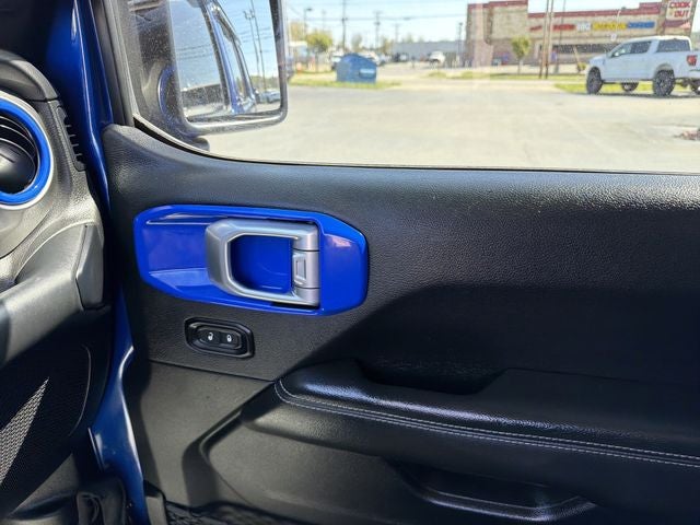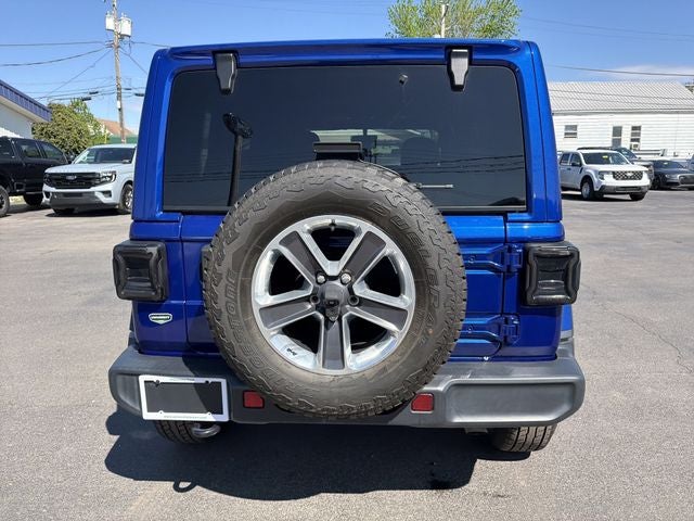 Adventure meets comfort in this Ocean Blue Metallic Clearcoat Wrangler Unlimited Sahara. Powered by a 3.6L V6, 8-speed automatic transmission, and 4WD. The Dual Top Group gives you the best of both worlds with a body color 3-piece hard top and premium black Sunrider soft top. Inside, enjoy heated front seats, a heated steering wheel, dual-zone climate control, remote start, and a premium Alpine audio system. The 8.4 touchscreen with navigation, Apple CarPlay, Android Auto, HD Radio, and 4G LTE Wi-Fi hotspot keeps you connected wherever the road or trail takes you. Bold 18 polished wheels complete the look.