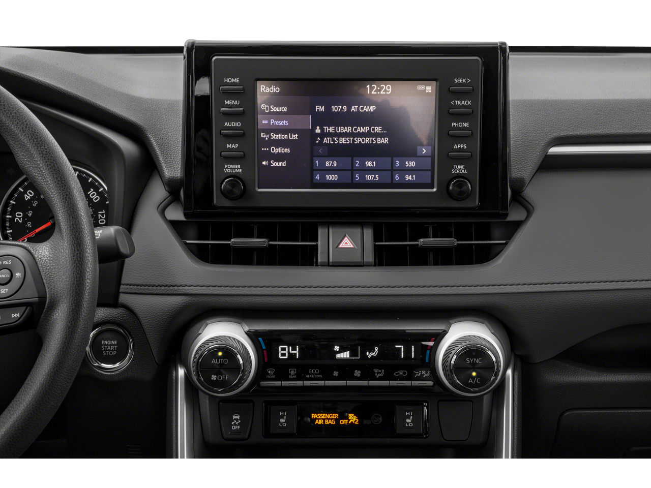 - Radio: AM/FM Stereo -inc: 7.0" touchscreen, 6 speakers, USB media port, hands-free phone capability, advanced voice recognition and music streaming via Bluetooth wireless technology, Android Auto, Apple CarPlay and Amazon Alexa compatible, Sirius XM w/3-month All Access trial, Connected Services Safety Connect w/1-year trial, and Wi-Fi Connect w/up to 2GB within 3-month trial, See toyota.com/connected-services for details