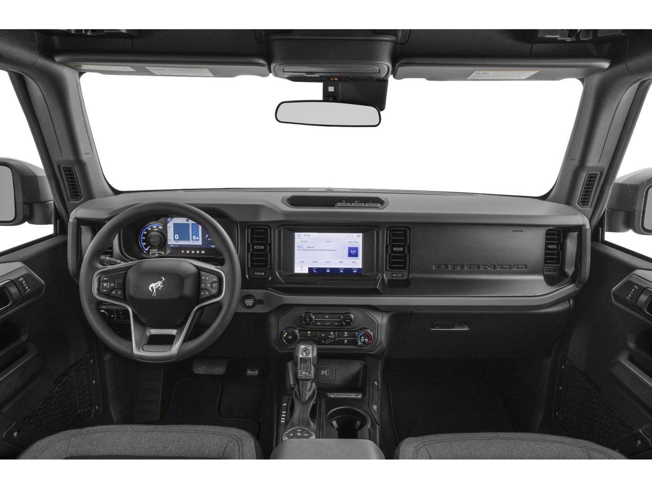 4-Wheel Disc Brakes, 6 Speakers, ABS brakes, Air Conditioning, AM/FM radio: SiriusXM with 360L, AM/FM Stereo, Auto High-beam Headlights, Black Roof Rails w/Crossbars, Brake assist, Brush Guard, Compass, Convertible HardTop, Convertible roof lining, Delay-off headlights, Driver door bin, Driver vanity mirror, Dual front impact airbags, Dual front side impact airbags, Electronic Stability Control, Emergency communication system: 911 Assist, Exterior Parking Camera Rear, Ford Performance Heavy-Duty Modular Front Bumper, Front anti-roll bar, Front Bucket Seats, Front Center Armrest, Front reading lights, Front wheel independent suspension, Fully automatic headlights, Glass rear window, Heated door mirrors, Illuminated entry, Integrated roll-over protection, Keyless Entry Keypad, Low tire pressure warning, Occupant sensing airbag, Outside temperature display, Overhead airbag, Overhead console, Panic alarm, Passenger door bin, Passenger vanity mirror, Power door mirrors, Power steering, Power windows, Radio data system, Rear window defroster, Rear window wiper, Remote keyless entry, Security system, SiriusXM Radio w/360L, Speed control, Split folding rear seat, Steering wheel mounted audio controls, SYNC 4, Tachometer, Telescoping steering wheel, Tilt steering wheel, Traction control, Trip computer, and Variably intermittent wipers.