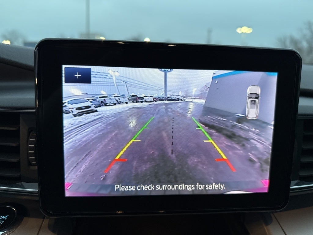 Class IV Trailer Tow Package, Equipment Group 202A (Acoustic-Laminated Front Side Windows, Heated ActiveX Captain's Chairs, Heated Steering Wheel, LED Fog Lamps, Remote Start System, and SecuriCode Keyless Entry Keypad), 20 Premium Painted Aluminum Wheels, 3.58 Non-Limited-Slip Rear Axle Ratio, 3rd row seats: bench, 4-Wheel Disc Brakes, 4G LTE Wi-Fi Hotspot Credit, 6 Speakers, ABS brakes, Air Conditioning, Alloy wheels, AM/FM radio: SiriusXM, AM/FM Stereo, Auto High-beam Headlights, Automatic temperature control, Brake assist, Bumpers: body-color, Compass, Delay-off headlights, Driver door bin, Driver vanity mirror, Dual front impact airbags, Dual front side impact airbags, Electronic Stability Control, Emergency communication system: SYNC 3 911 Assist, Exterior Parking Camera Rear, FordPass Connect, Four wheel independent suspension, Front & Second Row Floor Liners (16B), Front anti-roll bar, Front Bucket Seats, Front Center Armrest, Front dual zone A/C, Front reading lights, Fully automatic headlights, Heated door mirrors, Heated front seats, Heated Unique Cloth Captain's Chairs, Illuminated entry, Knee airbag, Leather steering wheel, Low tire pressure warning, Occupant sensing airbag, Outside temperature display, Overhead airbag, Overhead console, Panic alarm, Passenger door bin, Passenger vanity mirror, Power door mirrors, Power driver seat, Power Liftgate, Power passenger seat, Power steering, Power windows, Rear air conditioning, Rear anti-roll bar, Rear Auxiliary Controls Credit, Rear reading lights, Rear window defroster, Rear window wiper, Remote keyless entry, Roof rack: rails only, Security system, Speed control, Speed-sensing steering, Speed-Sensitive Wipers, Split folding rear seat, Spoiler, Steering wheel mounted audio controls, SYNC 3 Communications & Entertainment System, SYNC 3/Apple CarPlay/Android Auto, Tachometer, Telescoping steering wheel, Tilt steering wheel, Traction control, Trip computer, Variably intermittent wipers, and Wheels: 18 5-Spoke Silver-Painted Aluminum. 20/27 City/Highway MPG