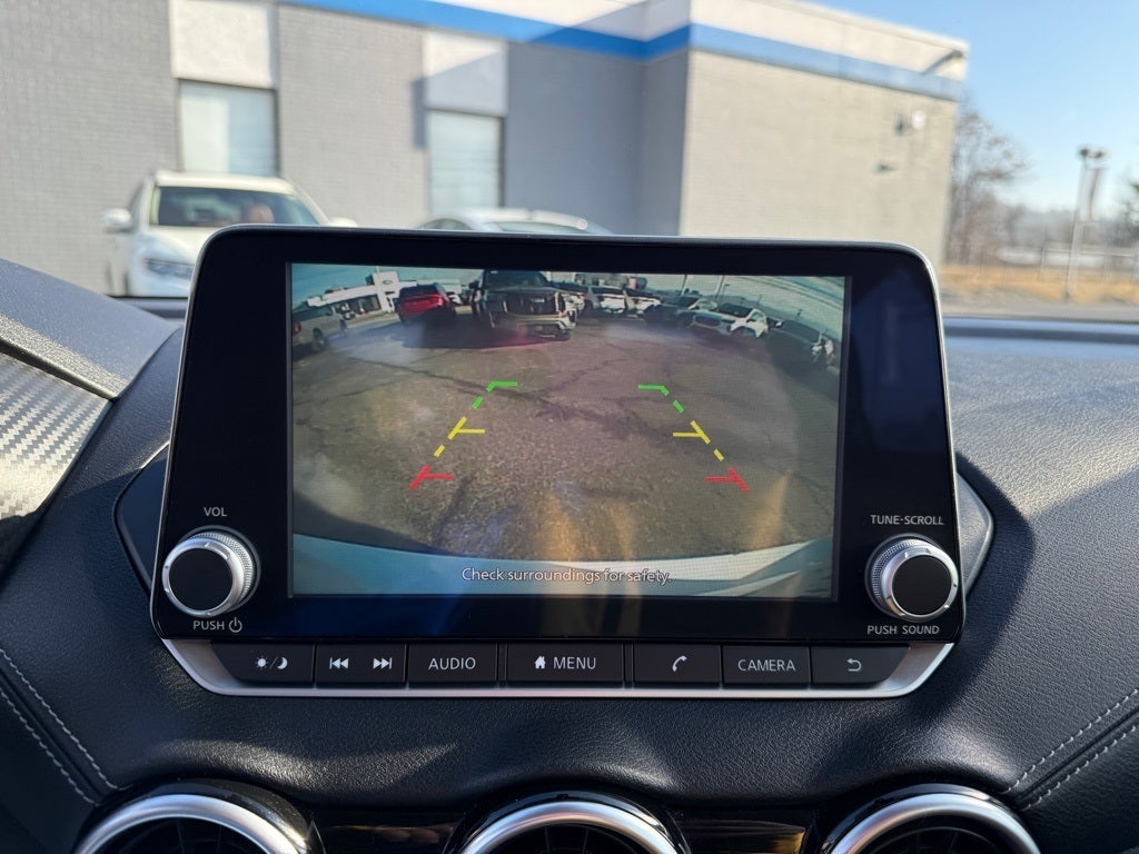 16 Alloy Wheels, 4-Wheel Disc Brakes, 6 Speakers, ABS brakes, Air Conditioning, Alloy wheels, AM/FM radio: SiriusXM, Auto High-beam Headlights, Blind Spot Warning, Brake assist, Bumpers: body-color, Carpeted Floor Mats w/Trunk Mat, Delay-off headlights, Driver door bin, Driver vanity mirror, Dual front impact airbags, Dual front side impact airbags, Electronic Stability Control, Four wheel independent suspension, Front anti-roll bar, Front Bucket Seats, Front Center Armrest, Front reading lights, Fully automatic headlights, Heated door mirrors, Illuminated entry, Knee airbag, Low tire pressure warning, NissanConnect featuring Apple CarPlay and Android Auto, Occupant sensing airbag, Outside temperature display, Overhead airbag, Overhead console, Panic alarm, Passenger door bin, Passenger vanity mirror, Power door mirrors, Power steering, Power windows, Premium Cloth Seat Trim, Radio data system, Radio: AM/FM w/RDS/MP3/Aux-In, Rear anti-roll bar, Rear Parking Sensors, Rear side impact airbag, Rear window defroster, Remote keyless entry, Security system, Speed control, Speed-sensing steering, Split folding rear seat, Steering wheel mounted audio controls, Tachometer, Telescoping steering wheel, Tilt steering wheel, Traction control, Trip computer, and Variably intermittent wipers. 29/39 City/Highway MPG